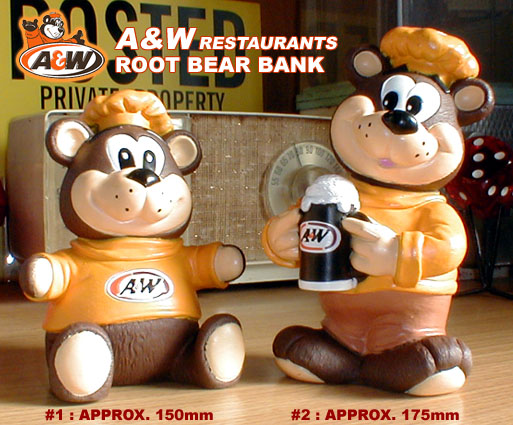 「A & W」のキャラクター「ルートベアくん」の貯金箱です。