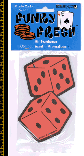 ファジーダイスの形にダイカットされたエアフレッシュナーです。