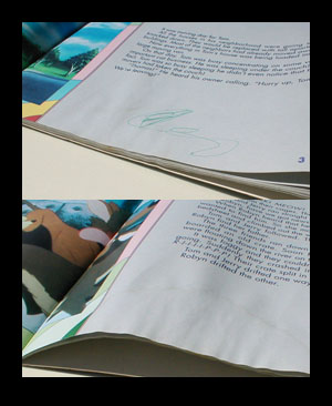 子供のサインとシミなどの傷みがあります。(写真2枚目参照)