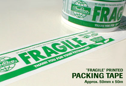 写真のFRAGILE(壊れ物)プリントのパッキングテープ(50mm×50m)が