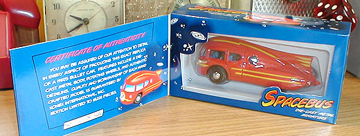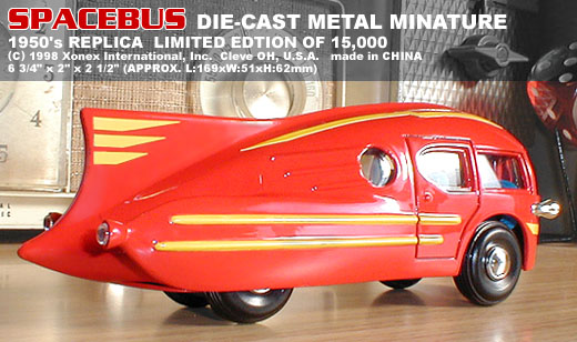 1950年代頃の宇宙ロケットのような砲丸型バスを
